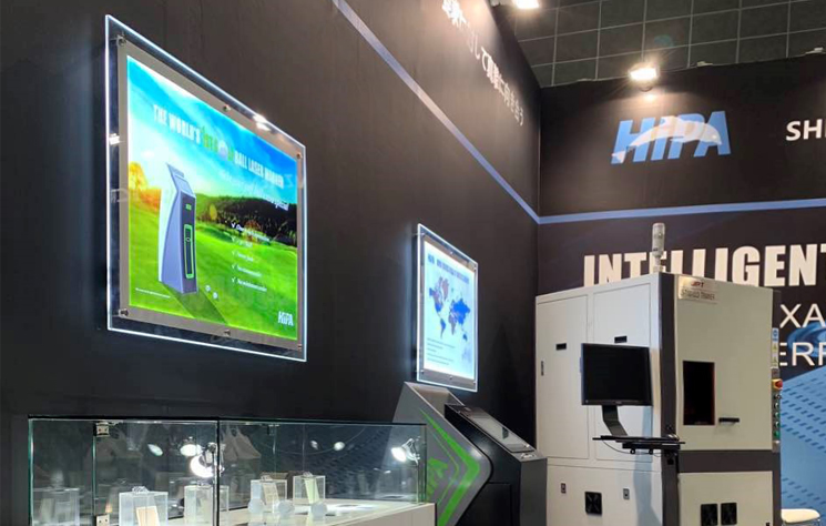 HiPA的展位裝修簡潔、優雅卻有力,黑藍相稱的背景知性沉穩,展位里三臺高大精密的設備成為HiPA高度精準的最佳代言。