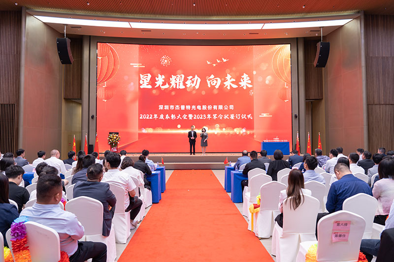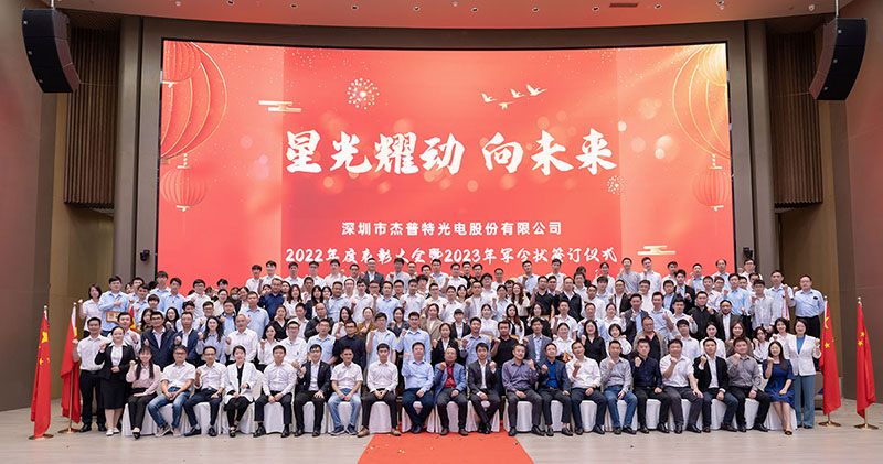 星光耀動,向未來。3月11日,深圳市杰普特光電股份有限公司2022年度表彰大會暨2023年軍令狀簽訂儀式在捷順國際會議廳隆重舉行。董事長黃治家、總經(jīng)理劉健、副總經(jīng)理成學(xué)平、杰普特管理層,與全體員工歡聚一堂,為杰普特在剛剛過去的2022年所取得的成就慶賀,也為贏戰(zhàn)充滿希望且更具挑戰(zhàn)的2023而祝福。