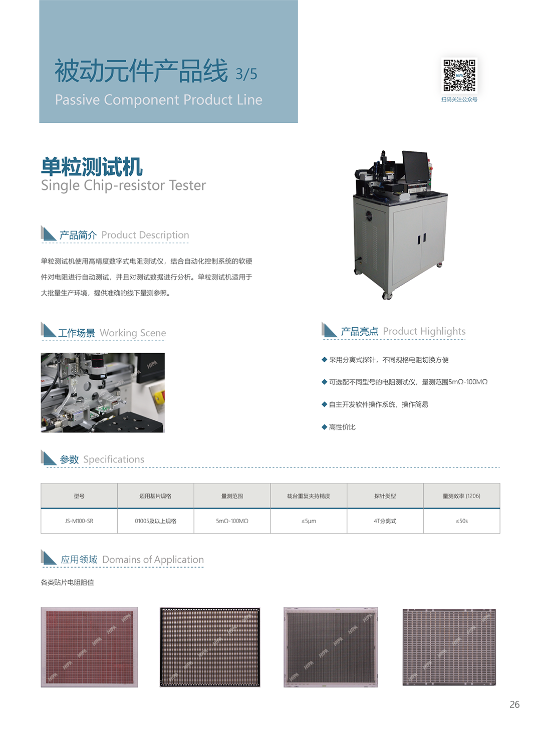 單粒測試機使用高精度數(shù)字式電阻測試儀,結(jié)合自動化控制系統(tǒng)的軟硬件對電阻進行自動測試,并且對測試數(shù)據(jù)進行分析。單粒測試機適用于大批量生產(chǎn)環(huán)境,提供準(zhǔn)確的線下量測參照。