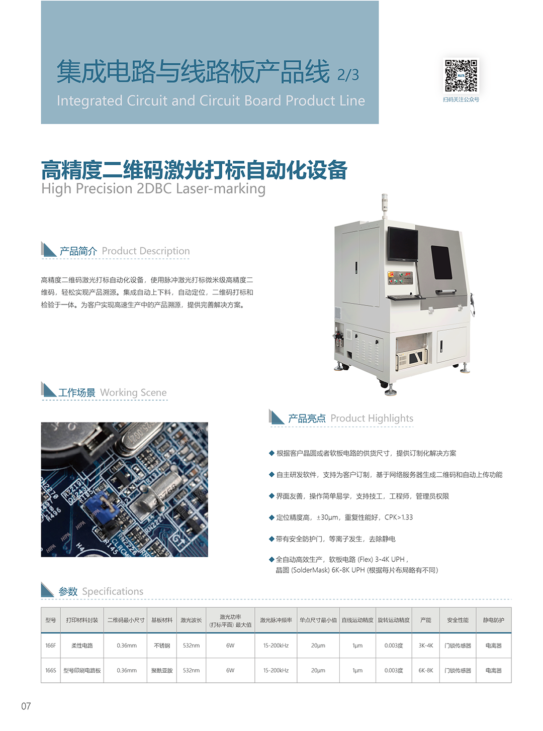 高精度二維碼激光打標自動化設備,使用脈沖激光打標微米級高精度二