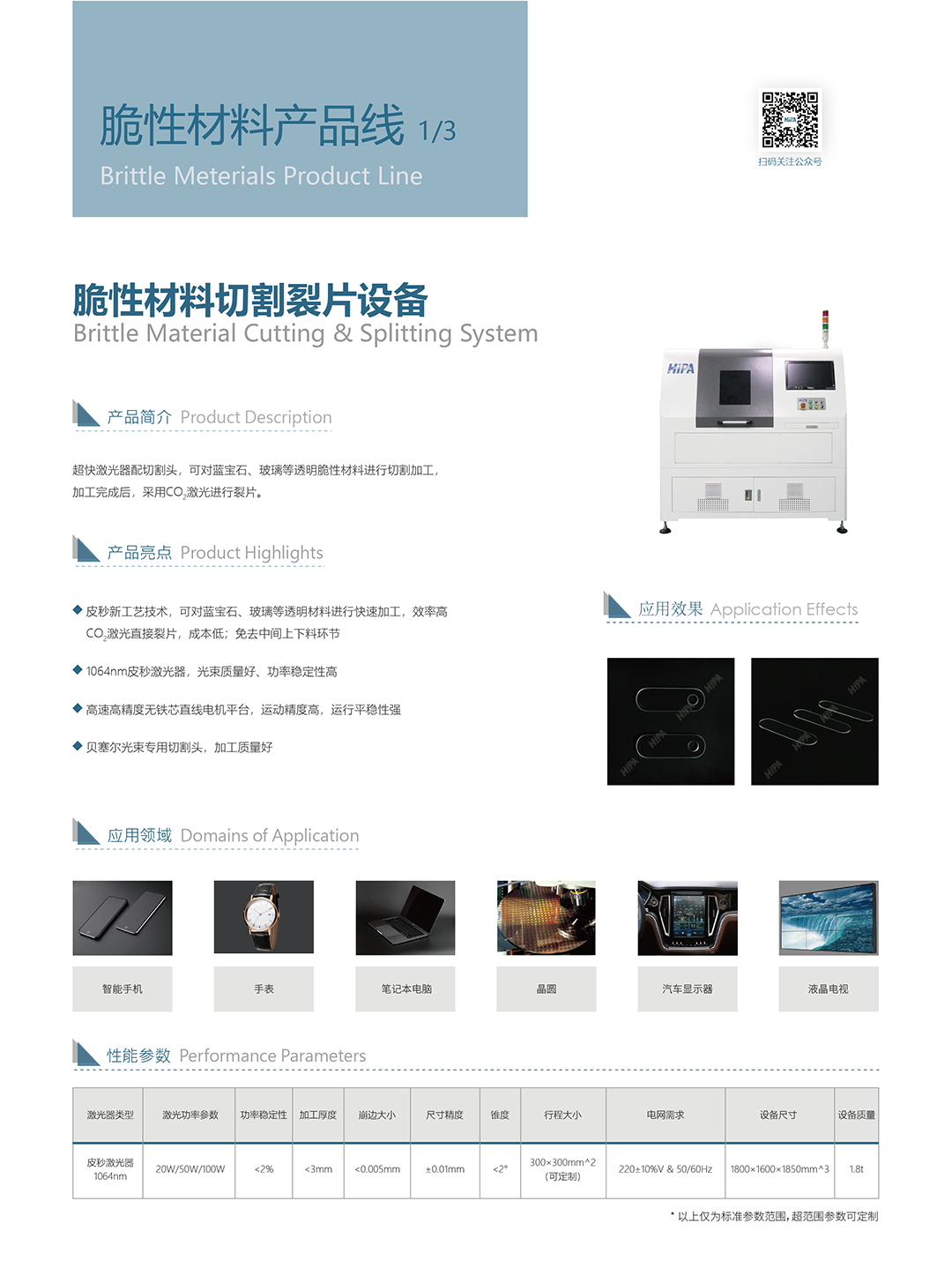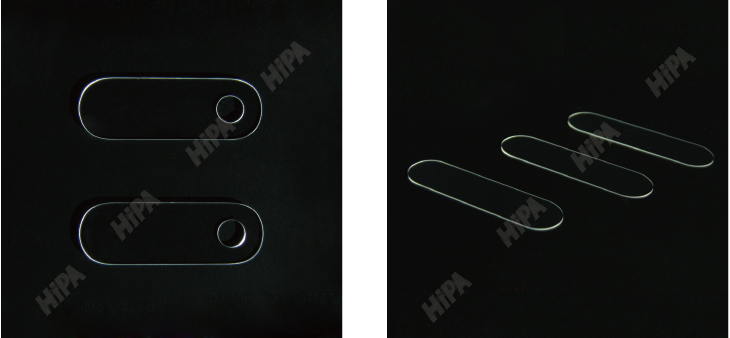 超快激光器配切割頭,可對藍(lán)寶石、玻璃等透明脆性材料進(jìn)行切割加工, 加工完成后,采用CO2激光進(jìn)行裂片。