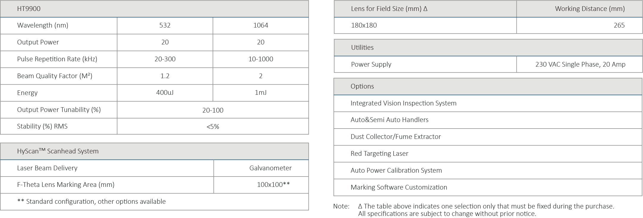 Hylax HT9900 hybrid dual wavelength laser are specially designed to deliver both 532nm and 1064nm wavelengths in a single system to perform precision laser functions and processing applications in the FA industries. Having dual wavelength, the laser will be able to engage a wider range of materials composite and provides optimum results and presentations.